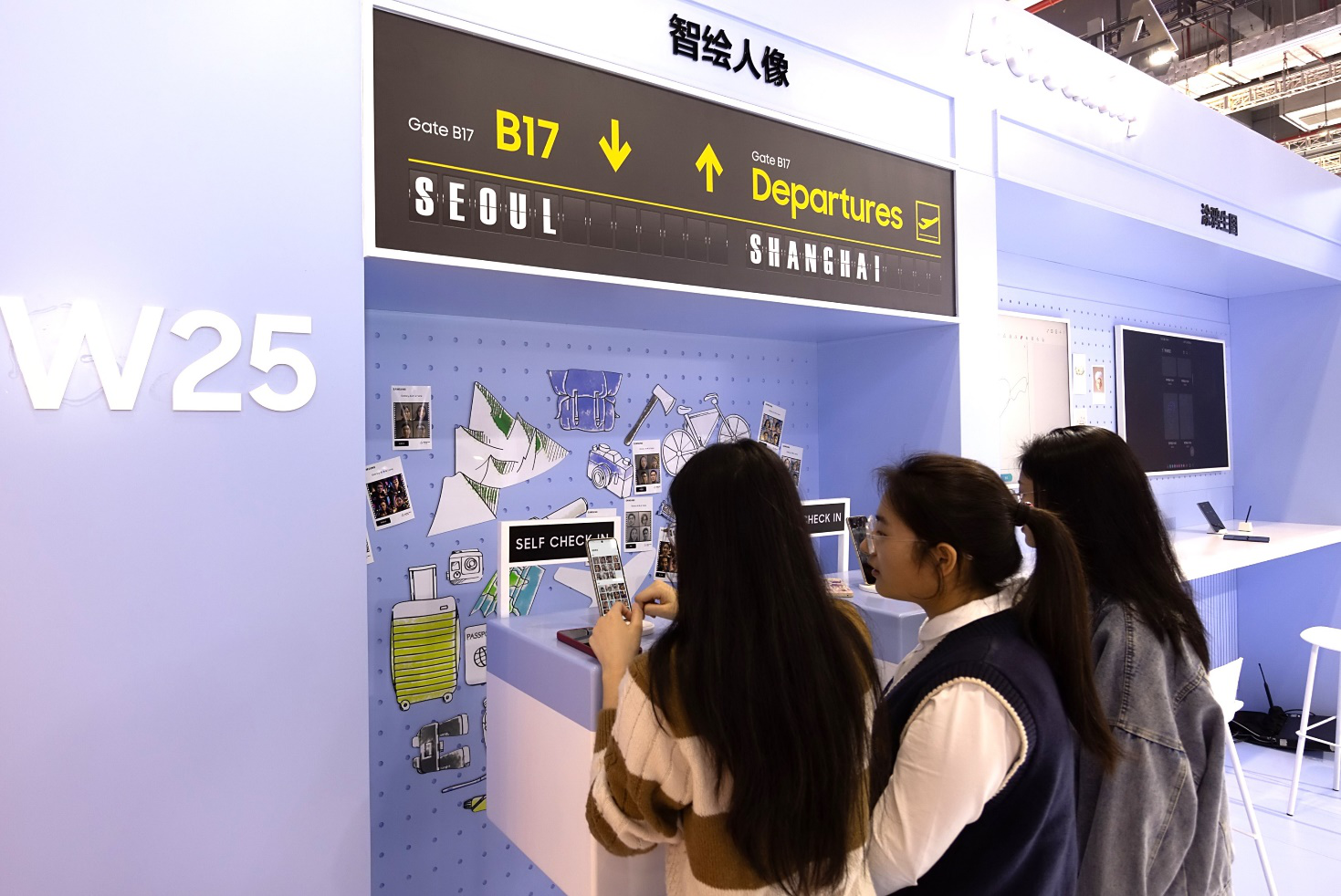 参观者在三星展台体验“智绘人像”