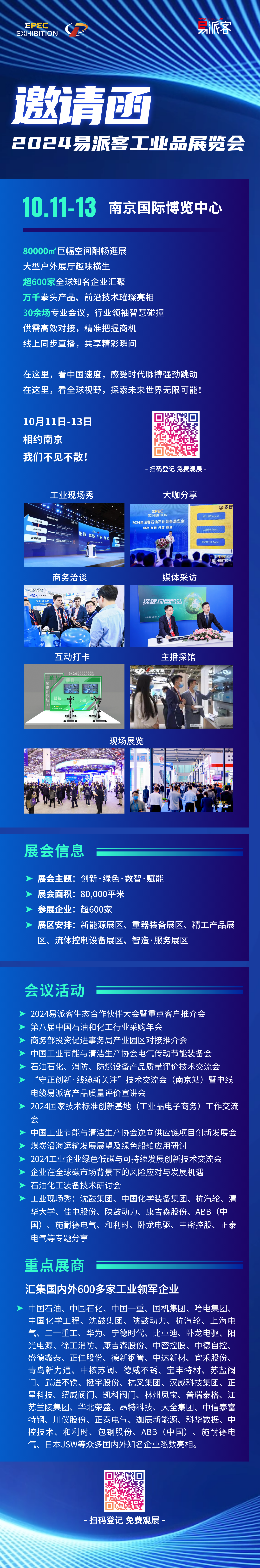 从2021年的3.5万平方米到2023年的5.3万平方米,2024易派客工业品展览会暨石油石化工业展览会将在南京国际博览中心举办。易派业品10月11日至13日,客工